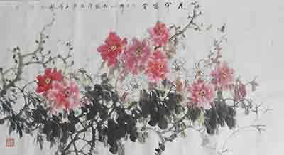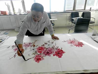 10月7日,当代著名画家王玉伟到访米兰体育平台官方网站,受到公司领导热情接待。图为王玉伟即兴创作《花开富贵》。(办公室 冯继宏)